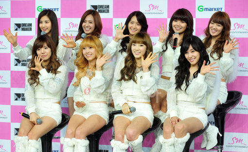 28일 오후 서울 송파구 올림픽공원 펜싱경기장에서 열리는 소녀시대 아시아 투어 앙코르 콘서트 '인투더 뉴월드' 마지막날 공연을 앞두고 열린 기자회견에서 그룹 소녀시대가 인사를 하고 있다.