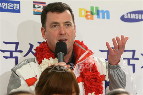 2010 밴쿠버 동계올림픽에서 금메달 6개, 은메달 6개, 동메달 2개를 획득해 종합 5위로 역대 최고의 성적을 거둔 한국선수단이 2일 오후 인천국제공항을 통해 입국했다. 귀국기자회견에서 피겨 브라이언 오서 코치가 취재진의 질문에 답하고 있다.
