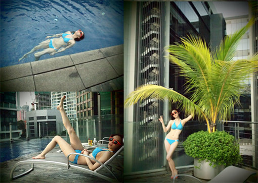 가인은 6일 밤 자신의 미니홈피에 싱가포르 호텔 수영장에서 찍은 사진들을 게재했다.
