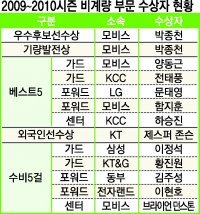 시즌 MVP는 함지훈(모비스·72표·90%%·사진), 신인상은 박성진(전자랜드·73표·91.3%%)에게 돌아갔다.
