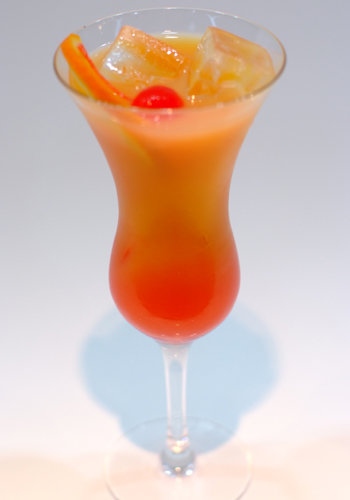 △재료: 테킬라 45ml, 오렌지 주스 90ml, 그레나딘 시럽 15ml, 오렌지, 체리 약간