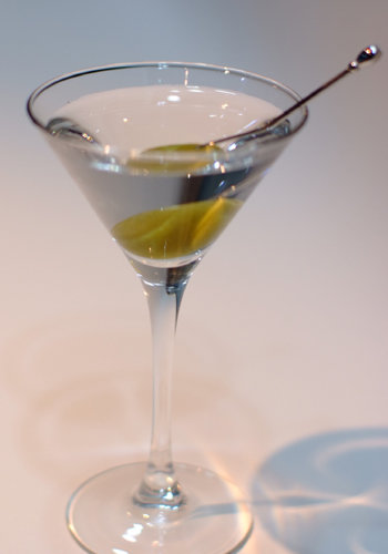 △재료: 드라이진 45ml, 드라이 버무스 15ml, 얼음, 올리브 약간