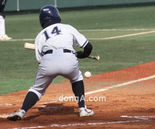 13일 서울 목동야구장에서 열린 제64회 황금사자기(동아일보사 스포츠동아 대한야구협회 공동 주최) 전국고교야구대회 둘째날 강릉고-부천고의 경기. 1회말 1사 1루 상황에서 부천고의 서동민이 번트를 시도하고 있다.