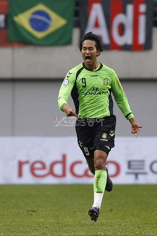 14일 오후 서울월드컵경기장에서 열린 FC 서울과 전북 현대의 쏘나타 K리그 2010 3라운드 경기. 후반 41분 전북현대 심우연이 결승골을 터트린후 세리머니하고 있다.