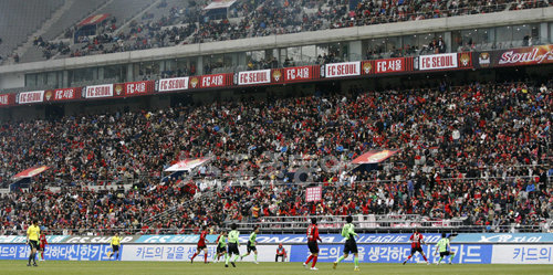 14일 오후 서울월드컵경기장에서 열린 FC 서울과 전북 현대의 쏘나타 K리그 2010 3라운드 경기.FC 서울의 홈경기 개막전인 이번 경기에 궂은 날씨에도 불구하고 수많은 관중이 경기를 지켜보고 있다.
