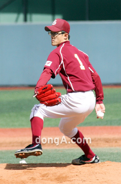 16일 서울 목동야구장에서 열린 제64회 황금사자기(동아일보사 스포츠동아 대한야구협회 공동 주최) 전국고교야구대회 다섯째날 광주제일고-설악고의 경기. 설악고의 선발투수 정대웅이 역투를 펼치고 있다.