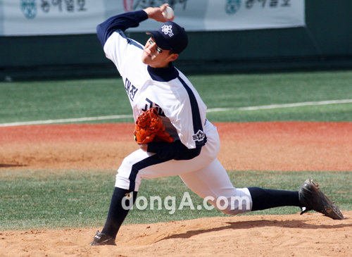 16일 서울 목동야구장에서 열린 제64회 황금사자기(동아일보사 스포츠동아 대한야구협회 공동 주최) 전국고교야구대회 다섯째날 포철공고-대전고의 경기. 대전고의 선발투수 황인준이 역투를 펼치고 있다.