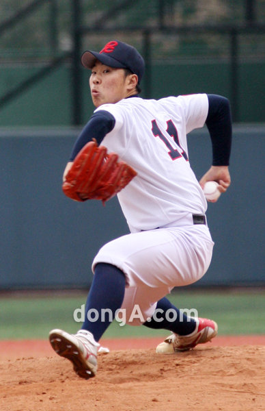 17일 서울 목동야구장에서 열린 제64회 황금사자기(동아일보사 스포츠동아 대한야구협회 공동 주최) 전국고교야구대회 여섯째날 경북고-배재고의 경기. 배재고의 투수 선동현이 역투를 펼치고 있다.