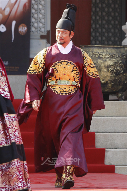 18일 오후 경기 용인 드라미아 오픈세트 인정전에서 진행 된 MBC 창사 49주년 특별기획 드라마 '동이(同伊)' (극본 김이영, 연출 이병훈·김상협) 제작발표회에서 숙종 역의 탤런트 지진희가 입장하고 있다.