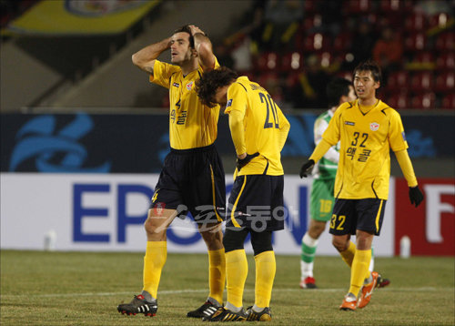 23일 탄천종합운동장에서 열린 AFC 챔피언스리그 E조 3라운드 성남 일화 대 베이징 궈안의 경기에서 성남 샤샤가 전반 결정적인 득점 찬스를 놓친 뒤 아쉬워하고 있다.