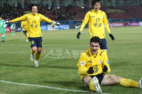 23일 탄천종합운동장에서 열린 AFC 챔피언스리그 E조 3라운드 성남 일화 대 베이징 궈안의 경기에서 성남 라돈치치가 송호영의 도움으로 추가골을 터뜨린 후 세리머니 하고 있다.