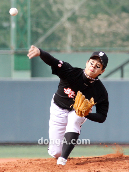 23일 서울 목동야구장에서 열린 제64회 황금사자기(동아일보사 스포츠동아 대한야구협회 공동 주최) 전국고교야구대회 16강전 휘문고-장충고의 경기. 장충고의 선발투수 최진웅이 역투를 펼치고 있다.