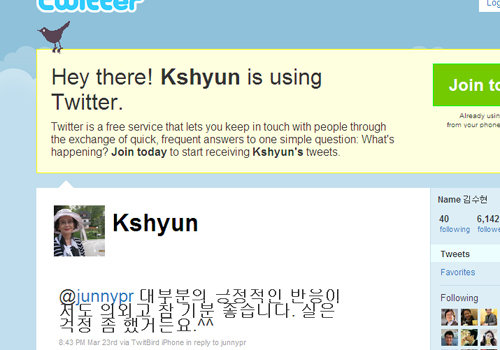 김수현 작가의 트위터가 화제다. 촌철살인의 대사를 그대로 옮겨놓은 듯 그녀가 트위터에 쏟아내는 맛깔스런 글 솜씨도 한몫하고 있지만, 무엇보다 최근 방영이 시작된 드라마와 맞물려 웬만한 아이돌 스타에 못지않은 방문자수를 자랑하고 있다.