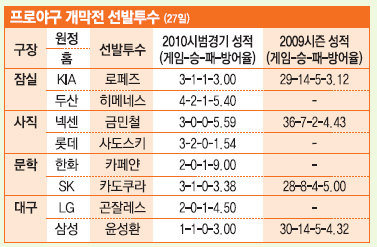 ‘반갑다, 야구야!’기다림이 간절했던 만큼, 설렘과 떨림으로 가슴이 벅차오른다. 2010년 한국프로야구가 27일 오후 2시, 전국 4개 구장에서 화려한 개막식을 갖고 7개월간의 대장정에 돌입한다. 메인 개막전인 한화-SK전(문학)을 비롯해, ‘디펜딩 챔피언’ KIA와 올 시즌 우승에 올인을 선언한 두산이 잠실에서 맞붙는다. 3년 연속 홈 100만 관중 돌파가 유력한 롯데는 넥센을 사직으로 불러들이고, 새로운 도약을 꿈꾸는 LG와 삼성은 대구에서 스타트를 끊는다.