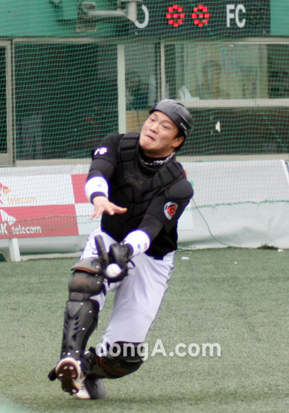 27일 서울 목동야구장에서 열린 제64회 황금사자기(동아일보사 스포츠동아 대한야구협회 공동 주최) 전국고교야구대회 4강전 경남고-장충고의 경기. 5회초 장충고의 포수 김준태가 파울볼을 잡아내고 있다.