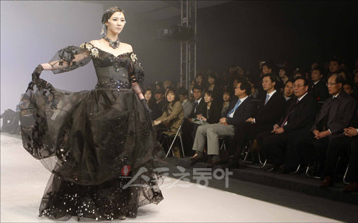 29일 오전 중국 베이징 뉴차이나 국제전시센터에서 '중국국제의류액세서리박람회'(CHIC)의 한국관 전시의 일환으로 열린 디자이너 앙드레 김 패션쇼 '프리뷰 인 차이나(Preview in China)' 무대에서 탤런트 이수경이 멋진 무대를 선보이고 있다.