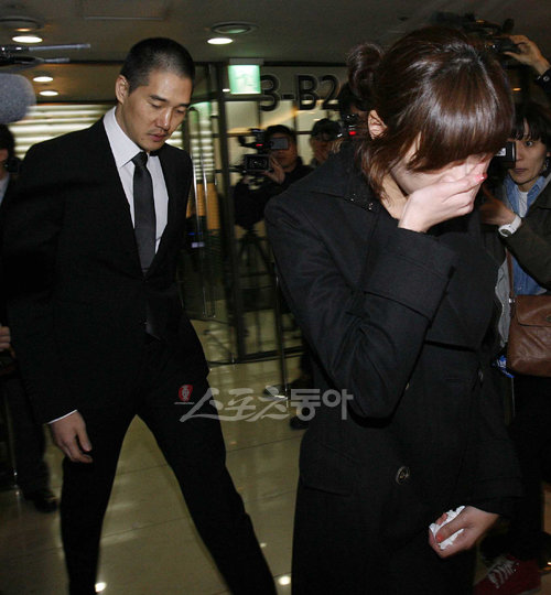 29일 故 최진영의 빈소가 차려진 서울 강남세브란스 병원에 조문 온 유지태-김효진 커플.