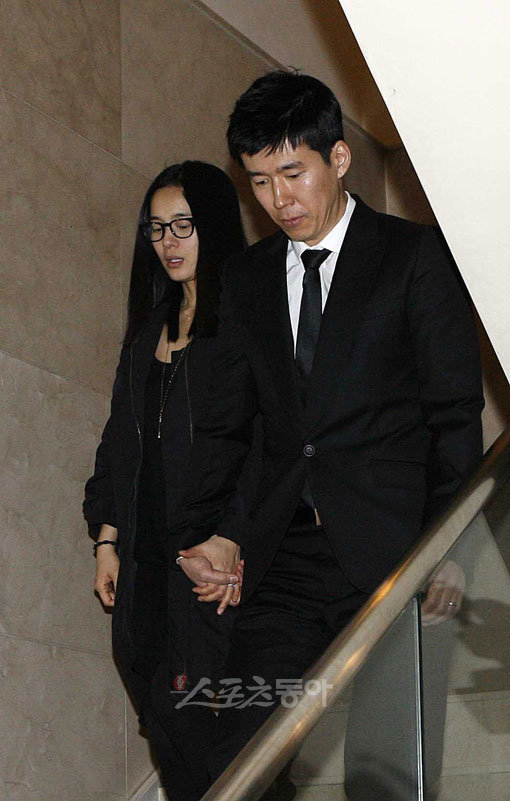 션-정혜영 부부가 30일 故 최진영의 빈소가 차려진 서울 강남세브란스병원을 찾아 조문을 마치고 발길을 돌리고 있다.
