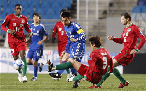 31일 수원월드컵경기장에서 열린 2010 아시아축구연맹(AFC) 챔피언스리그 G조 4라운드 수원 삼성 대 허난 젠예의 경기에서 수원 조원희가 상대 수비를 피해 볼을 연결하고 있다.
