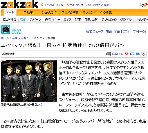 일본 산케이신문의 엔테테인먼트 뉴스 사이트인 ‘ZAKZAK’는 5일 음악평론가 토미사와 잇세이(富澤一誠)의 말을 인용해 “동방신기의 일본 활동 중단으로 소속사 에이벡스(avex)의 매출 중 30억~50억 엔이 사라질 것”이라며 “향후 이 공백을 어떻게 메울 것인지가 에이벡스의 과제”라고 보도했다.