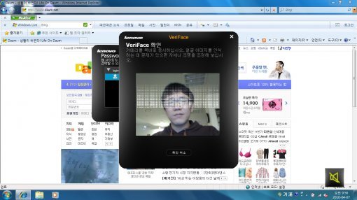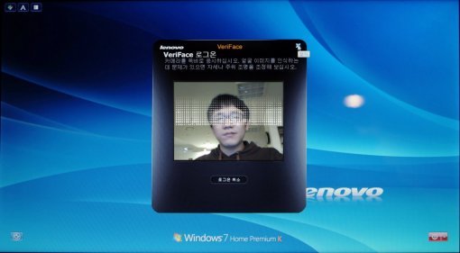 아이디어패드 G460의 전원을 켜면 가장 먼저 기동되는 소프트웨어가 바로 ‘VeriFace’다. 이는 일종의 화상 인식 방식의 보안 소프트웨어로, 이를 사용하면 암호를 입력하는 대신 노트북에 달린 웹캠에 얼굴을 인식시켜 윈도우에 로그인 할 수 있다. 물론 이런 방식이 편리고 보안성이 높긴 하지만 만약 타인에게 노트북을 빌려주어 쓰게 할 경우엔 곤란할 수도 있는데, 이 때는 화상 인식 대신 일반암호로 로그인할 수도 있으므로 큰 문제는 되지 않을 듯 하다.
