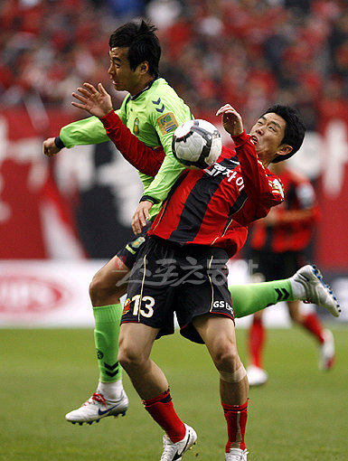 18일 벌어지는 FC서울-울산 현대의 K리그 8라운드는 1,2위 팀 간 대결 못지않게 친정팀을 상대하는 선수들의 활약 여부도 관심사다. 올 시즌 울산에서 서울로 이적한 현영민(오른쪽)이 지난 달 전북 현대와의 경기에서 상대 이동국과 볼 다툼을 벌이고 있다. 스포츠동아DB