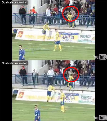 골 세리머니를 펼치던 축구선수가 관중에게 따귀를 맞는 사건이 발생했다.