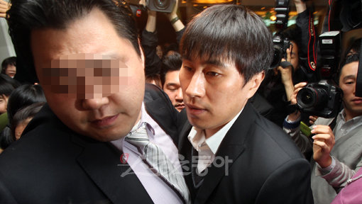 농구스타 이상민이 22일 서울 태평로클럽에서 공식 은퇴 기자회견을 가졌다. 회견장 입구에 도착한 이상민이 팬들의 입장 저지에 힘겹게 발걸음을 옮기고 있다.