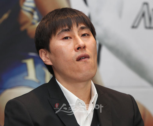 농구스타 이상민이 22일 서울 태평로클럽에서 공식 은퇴 기자회견을 가지며 눈시울을 붉히고 있다.