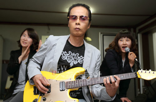 한국 최고의 록 기타리스트 김태원과 여기자들이 함께 포즈를 취했다. 그 어떤 예능 프로그램에서보다, 김태원은 기타를 들었을 때 진짜 폼이 나는 사람이다.
