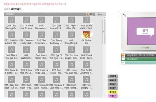 한 가지 특이한 건, 데이터/파일 복사다. 워드스케치는 와이드와는 달리, 동영상 파일이나 MP3 파일 복사할 때 전용 프로그램(사파이어)을 사용해야 한다. 기기에 맞게 인코딩을 해야 하기 때문이다. USB 케이블을 연결하면 별도의 외장 디스크로 인식되긴 하나, 그냥 복사해서는 미디어 파일이 인식되지 않는다. 따라서 민트패스 홈페이지를 통해 ‘사파이어’ 프로그램을 설치한 후 파일을 복사해야 한다. 사파이어 프로그램 설치 및 사용법은 매우 간단하지만, 반드시 인터넷에 연결돼 있어야 한다는 건 아쉬운 점으로 지적할 수 있다(워드스케치를 컴퓨터에 연결하면 자동으로 민트패스 홈페이지가 연결되고, 사전 등록된 계정으로 로그인까지 완료된다. 케이블을 빼면 당연히 자동으로 로그오프된다).