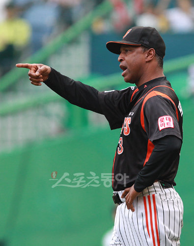 30일 인천 문학구장에서 열린 2010프로야구 SK와 롯데의 경기에서 4회말 1사 1,3루 상황. 정근우 타석때 조동화의 도루에 대한 심판 판정에 로이스터 감독이 거세게 항의 하고 있다.