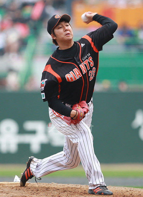 30일 인천 문학구장에서 열린 2010프로야구 SK와 롯데의 경기에서 롯데 선발로 등판한 장원준이 역투하고 있다.