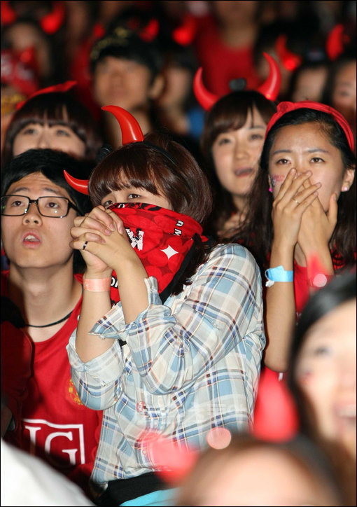 23일 새벽 서울 시청 광장에서 2010 남아공월드컵 16강 진출을 위한 본선 B조 마지막 경기인 나이지리아전을 시청하던 시민들이 나이지리아가 선취골을 따내자 아쉬움을 금치못하고 있다.