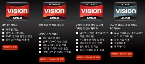 이에 따라 컴퓨터 관련 지식이 없어도 누구라도 자신이 원하는 작업 또는 성능에 맞게 구성된 비전 기술을 선택하면 되는 것이다. 예를 들어, 온라인 게임인 '아이온' 정도만 즐길 수 있을 정도를 원한다면, 복잡하게 CPU 종류와 그래픽 카드 사양 등을 따질 필요 없이 그냥 '비전 얼티밋' 로고가 붙은 컴퓨터를 선택하면 된다(비전 기술 컴퓨터에는 각 구성에 따른 비전 기술 로고 스티커가 붙는다). 제아무리 CPU가 좋아도 CPU만으로는 용도에 따른 최적의 성능을 발휘할 수 없기에, AMD 비전 조합의 의미는 더욱 선명해진다. 사람의 몸처럼 컴퓨터도 각 부품 간의 '밸런스'가 중요하기 때문이다. AMD 비전은 데스크탑과 노트북에 공통으로 적용된다.