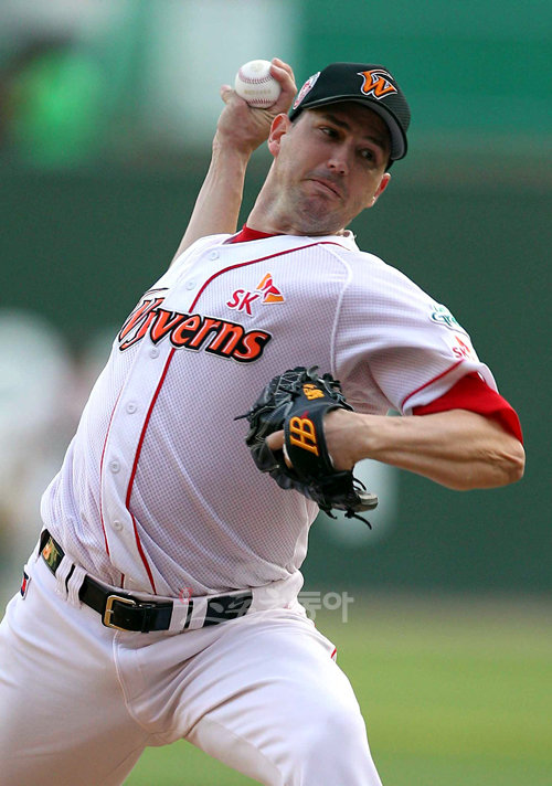 23일 오후 인천 문학야구장에서 2010 프로야구 SK 와이번스와 LG 트윈스 경기에서 SK 선발 투수 글로버가 역투하고 있다.