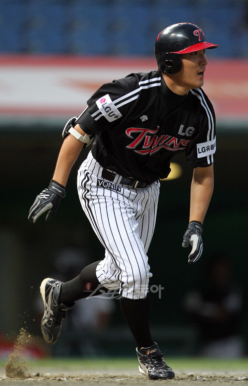 23일 오후 인천 문학야구장에서 열린 2010 프로야구 SK 와이번스와 LG 트윈스 경기에서 6회초 LG 공격 무사 무주자 상황에서 이진영이 우익수 뒤 홈런을 치고 있다.