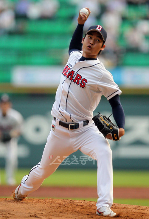 25일 오후 서울 잠실야구장에서 열린 2010 프로야구 두산 베어스와 KIA 타이거즈 경기에서 두산 선발 투수 홍상삼이 역투하고 있다.