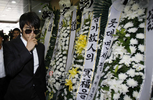 배우 송슨헌이 30일 오전 서울 논현동 자택에서 숨진채 발견된 박용하의 빈소가 마련된 서울 강남구 성모병원 장례식장으로 들어오고 있다.