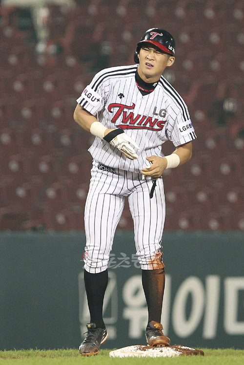 30일 잠실야구장에서 열린 2010 프로야구 LG과 넥센의 경기에서 1사 2, 3루 상황에 타석에 들어선 오지환이 때려낸 좌전안타가 수비수의 실책으로 3루 주자 정성훈과 2루 주자 조인성을 홈으로 불러들이고 3루에 세이트 되고 있다.