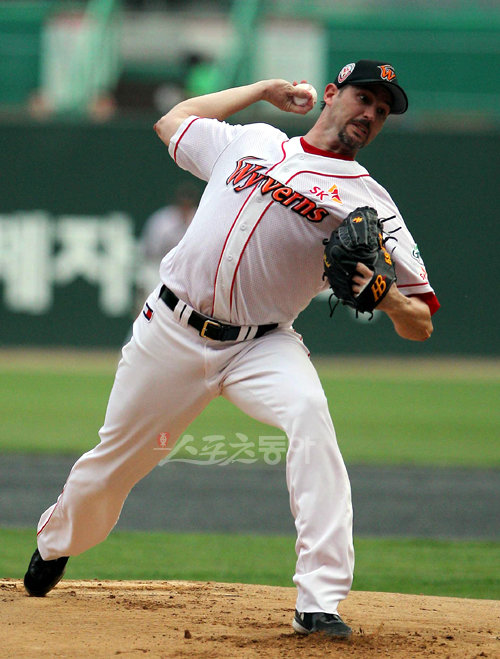 6일 저녁 인천 문학야구장에서 2010 프로야구 SK 와이번스와 삼성 경기가 열렸다. SK 선발 투수 글로버가 역투하고 있다.