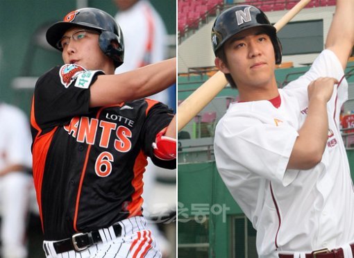 ‘드디어 새둥지로!’ 넥센에서 이적한 롯데 황재균이 21일 대전 한화전에 선발출장해 1회 1사서 타격을 하고 있다. 9회 4번째 타석에서 내야안타를 신고하며 4타수 1안타 1볼넷.(왼쪽)-KBO의트레이드 승인후 곧바로 22일 목동 SK전에 선발 출전한 넥센 김민성.