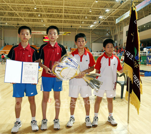 남자초등부 1위, 부산 양성초교 A팀모두 목표가 “올림픽 금메달”이란다. 벌써 미래의 한국배드민턴은 4개의 금메달 확보.