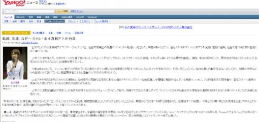 야후재팬에 보도된 야마모토 아나운서의 추락사 기사.