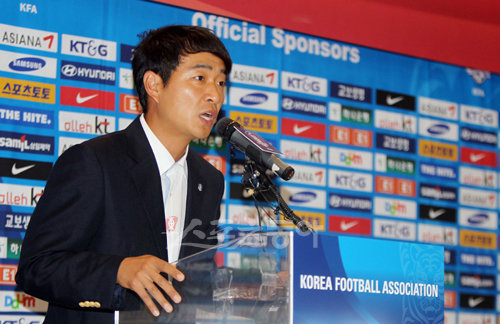 2010 FIFA U-20 여자월드컵에서 꿈의 4강 신화를 이룬 ‘한국 여자 축구국가대표팀이 4일 오후 오후 인천국제공항을 통해 입국했다. 최인철 감독이 기자회견을 갖고 있다.