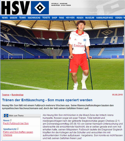 최근 독일 분데스리가 함부르크 SV 프리시즌에서 맹활약을 펼치며 ‘겁 없는 신예’로 떠오른 손흥민(18)이 수술대에 오르고 말았다.