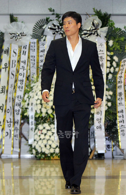체육인 우지원이 13일 오후 서울 종로구 연건동 서울대병원 장례식장에 마련된 원로 패션디자이너 故 앙드레 김(본명 김봉남) 빈소를 찾아 조문을 마치고 나오고 있다.