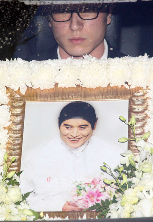 15일 오전 서울 종로구 연건동 서울대병원 장레식장에서 한국 패션계의 거장 故 앙드레김(본명 김봉남)의 발인식이 열려 고인의 영정이 장지인 천안공원묘원으로 향하고 있다.