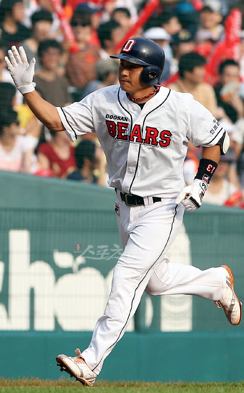 15일 서울 잠실야구장에서 열린 2010 프로야구 두산과 SK의 경기에서 1회말 1사 2, 3루 상황에 손시헌이 쓰리런 홈런을 날리고 그라운드를 돌고 있다.