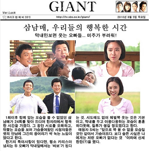 이런 노력 덕분인지 ‘자이언트’에 대한 애시청자들의 적극성은 트위터 참여에 그치지 않는다. 최근 ‘자이언트’의 애시청자라고 밝힌 한 누리꾼은 ‘자이언트 일보’라는 온라인 주간지를 만들어 눈길을 끌었다. ‘Ver.Luck’이라는 아이디를 쓰는 누리꾼은 7월22일 SBS ‘자이언트’ 공식 홈페이지에 ‘자이언트 일보’ 1호를 게재했다. ‘자이언트 일보’는 드라마 내용을 간단하고 임팩트있게 전하는 온라인 매거진 형식을 띠고 있다. SBS 드라마 ‘아내의 유혹’을 패러디한 ‘정연의 유혹?...점 안찍고 복수할거야’라는 헤드라인 등 극의 내용을 위트 있게 재구성해 화제이다.